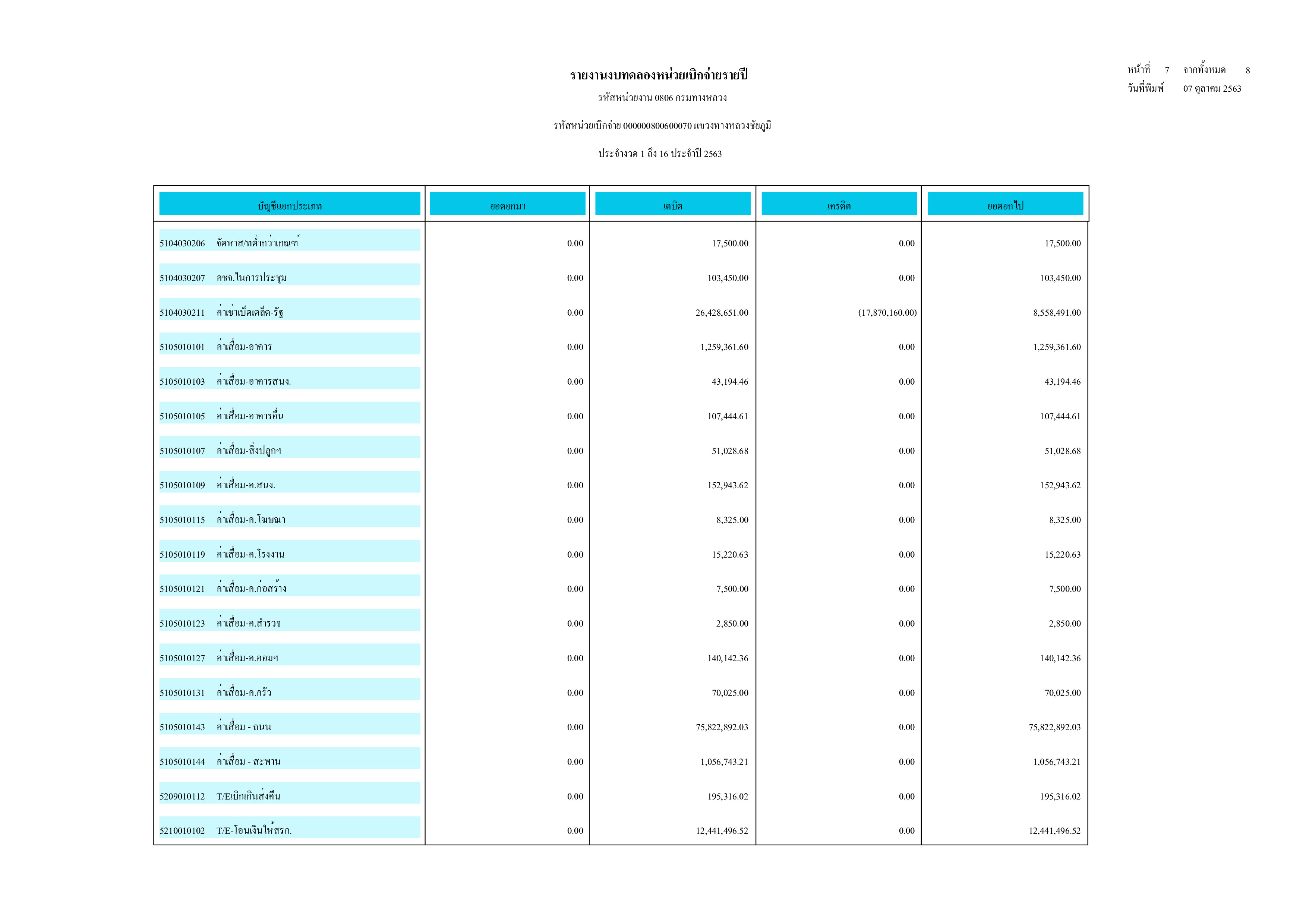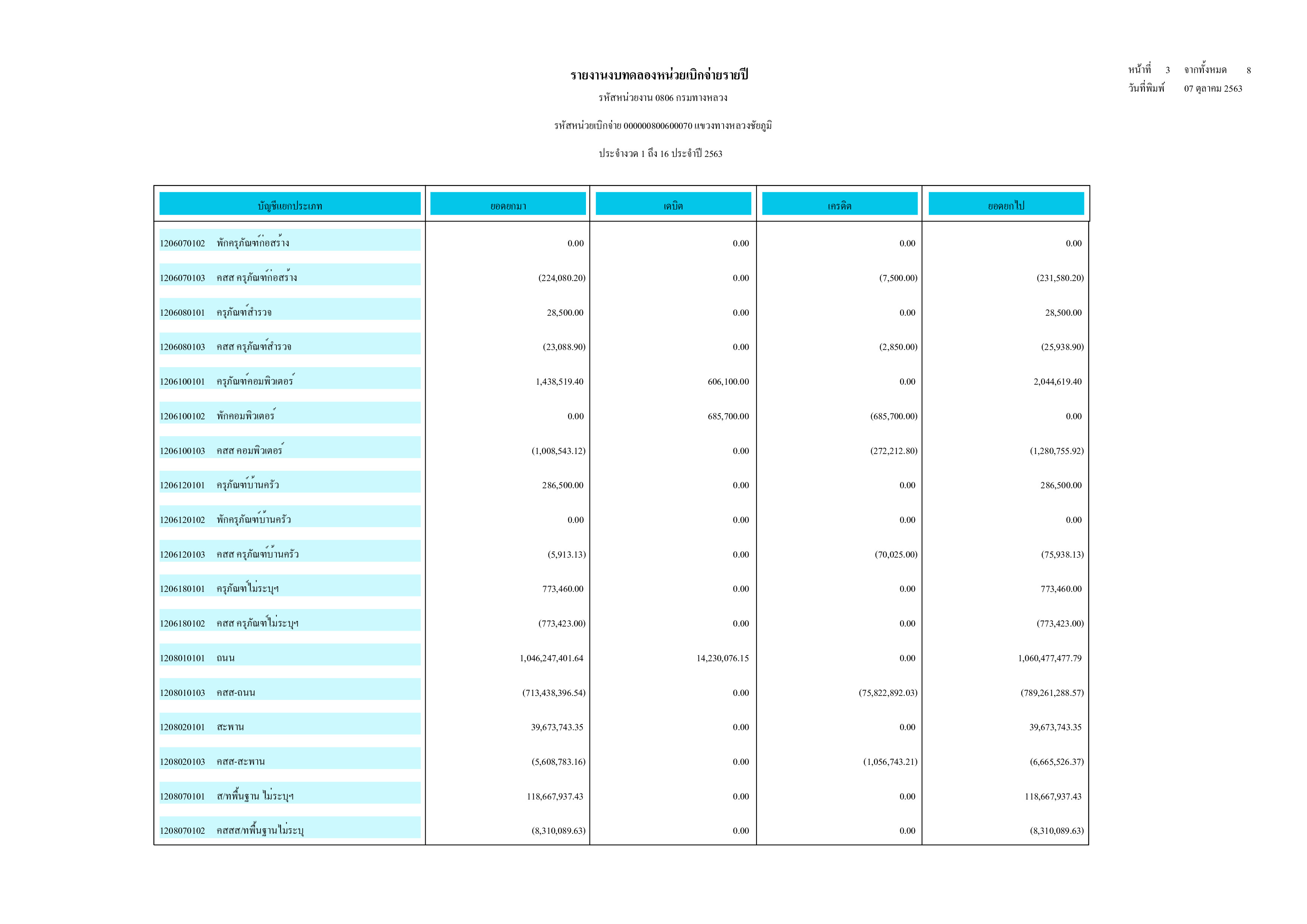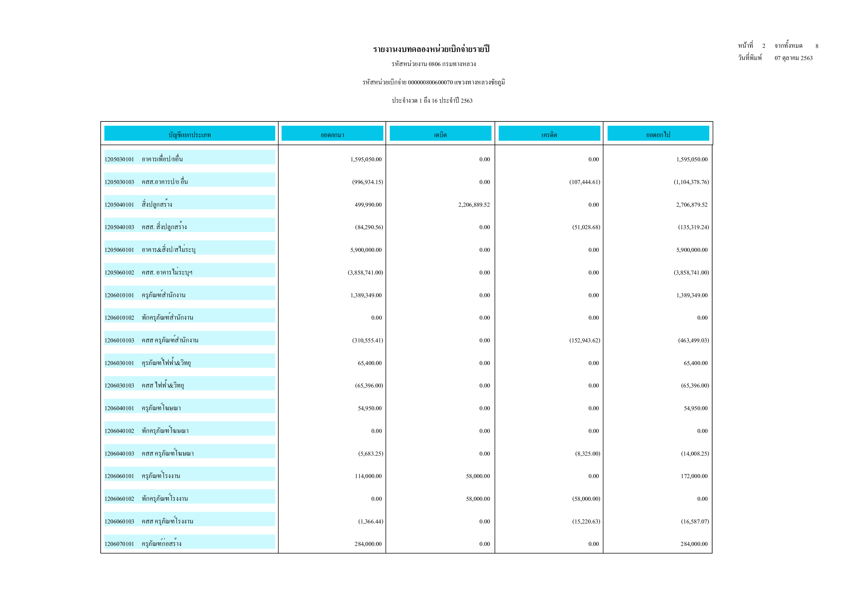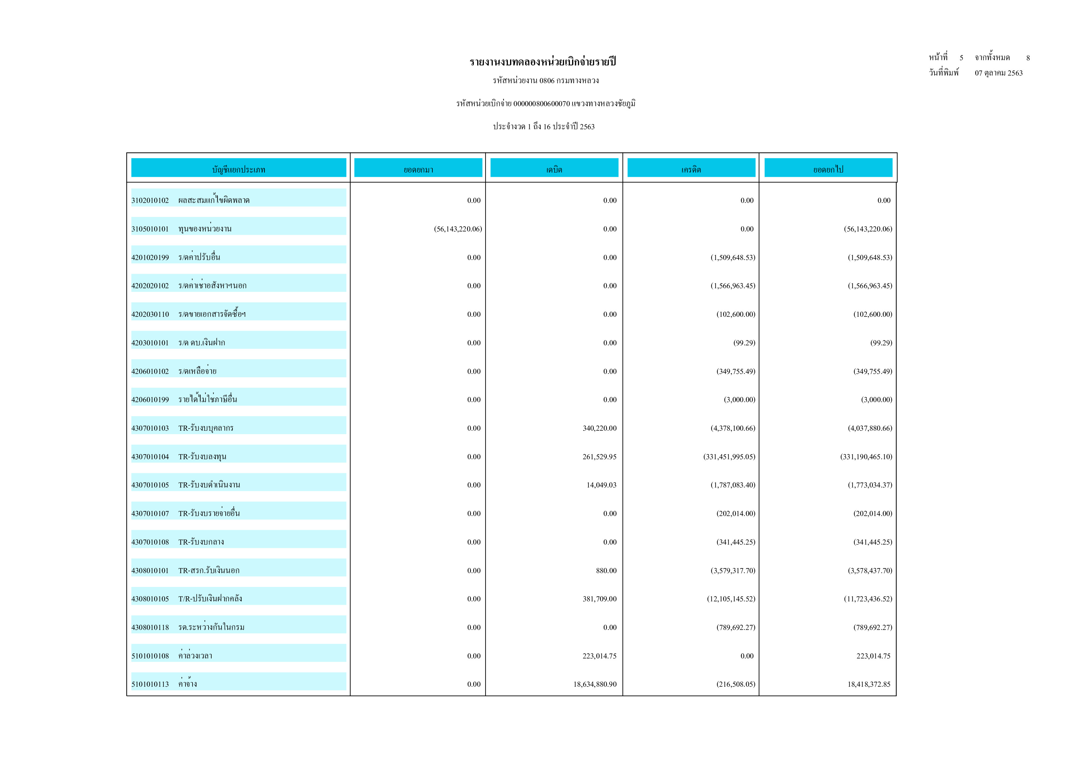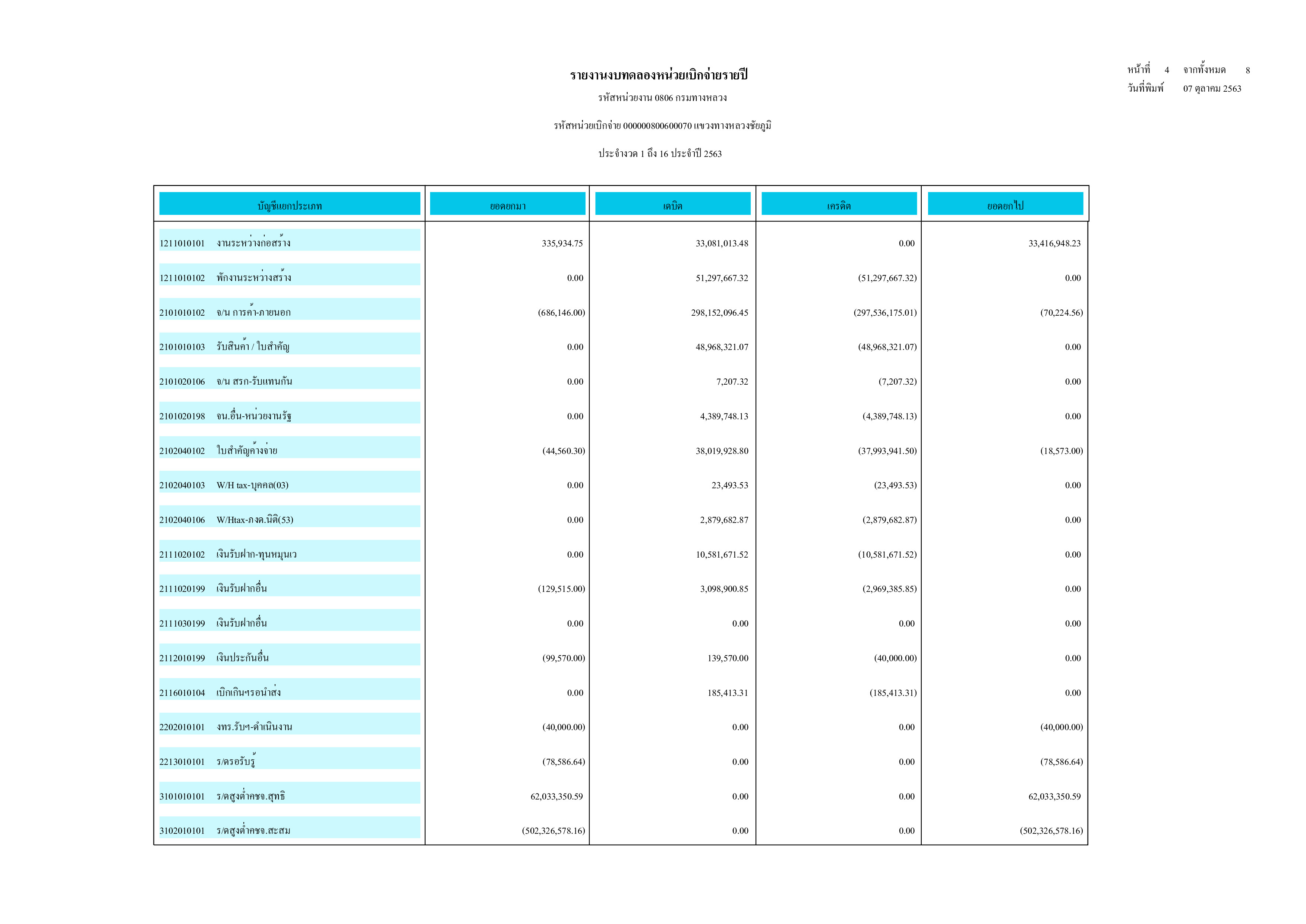รายงานงบทดลองหน่วยเบิกจ่ายรายปี ประจำปี 2563