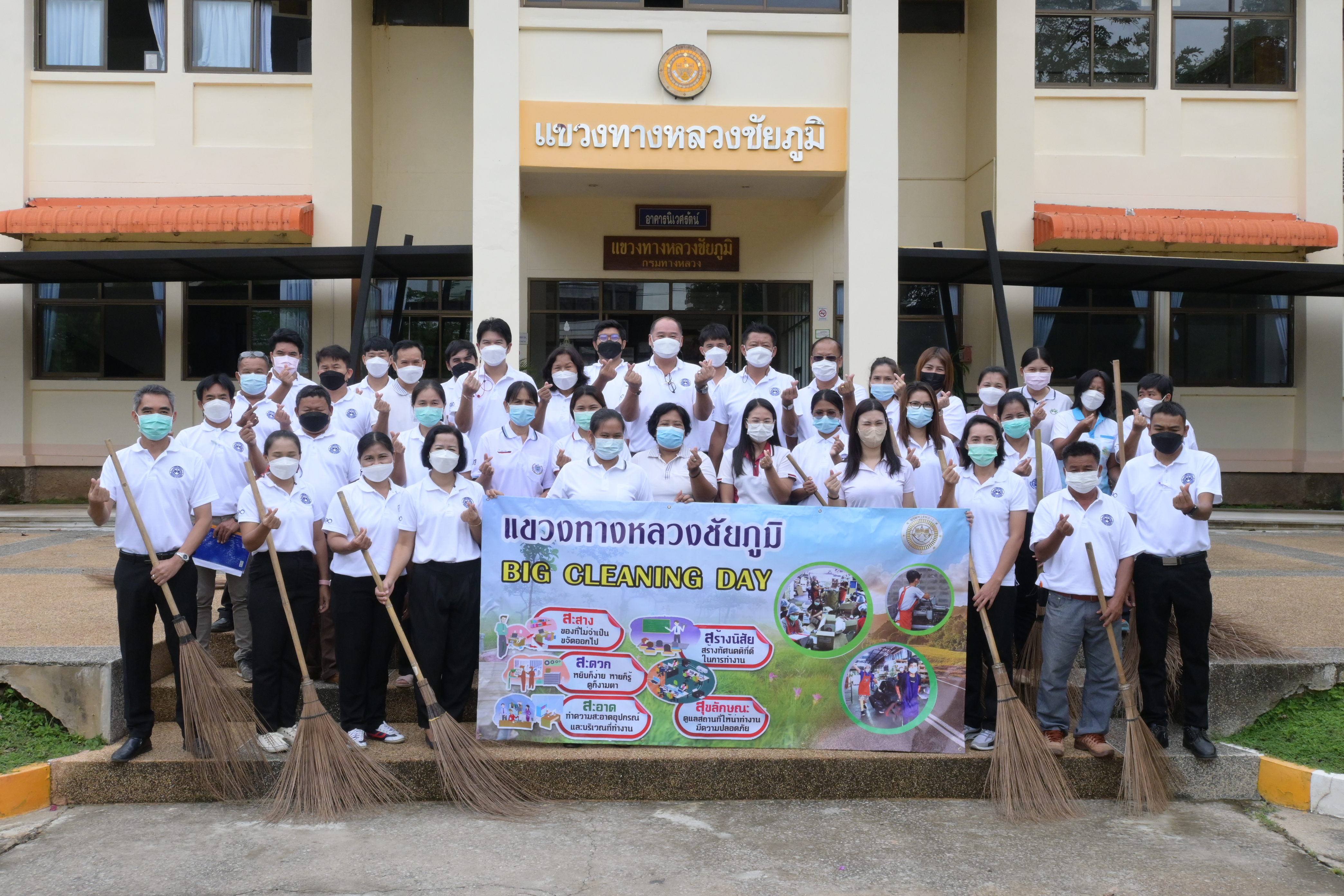 วันที่ 5 สิงหาคม 2565 เวลา 09.30 น. นายจักรกฤษณ์ บุญเรืองศรีิ ผู้อำนวยการแขวงทางหลวงชัยภูมิ พร้อมด้วยข้าราชการ พนักงานราชการ ลูกจ้างประจำและลูกจ้างชั่วคราว ในสังกัดแขวงทางหลวงชัยภูมิ ร่วมทำกิจกรรมวันทำความสะอาดใหญ่ประจำปี 2565 (Big Cleaning Day 2565) บริเวณสำนักงานแขวงทางหลวงชัยภูมิ พร้อมทั้งมอบนโยบายการปรับปรุงดูแลอาคารสำนักงาน เพื่อให้ผู้บริหารและเจ้าหน้าที่ทุกระดับได้ตระหนักถึงความสำคัญของกิจกรรม 5 ส อีกทั้งเป็นการสร้างจิตสำนึกที่ดีให้แก่เจ้าหน้าที่ทุกระดับ สร้างบรรยากาศที่ดีในการทำงาน ส่งเสริมให้บุคลากรมีความรักความสามัคคีต่อกันภายในองค์กร