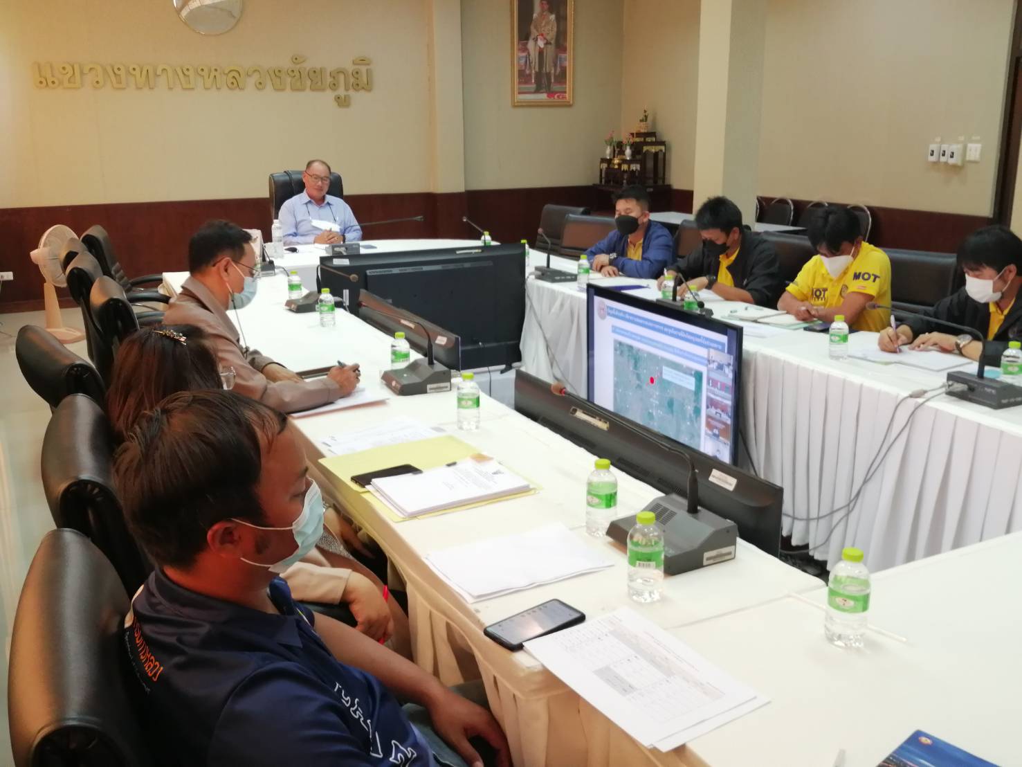 นายจักรกษณ์ บุญเรืองศรี ผู้อำนายการแขวงทางหลวงชัยภูมิ พร้อมด้วย รองผู้อำนวยการฝ่ายปฏิบัติการ หัวหน้างานปรับซ่อม หัวหน้างานไฟฟ้า หัวหน้างานอำนวยความปลอดภัย หัวหน้างานสารสนเทศ และหัวหน้าหมวดทางหลวงในสังกัด เข้าร่วมประชุมวิดีโอคอเฟอเรนซ์ ผ่านระบบออนไลน์ (Zoom Meeting Cloud) เพื่อรับทราบนโยบายการดำเนินงานเตรียมความพร้อมช่วงเทศกาลปีใหม่ประจำปี 2566 (ครั้งที่ 2) จากส่วนกลางกรมทางหลวง ณ ห้องประชุมพญาแล สำนักงานแขวงทางหลวงชัยภูมิ โดยมี นายมนตรี เดชาสกุลสม รักษาราชการแทน รองอธิบดีฝ่ายบำรุงทาง เป็นประธาน
