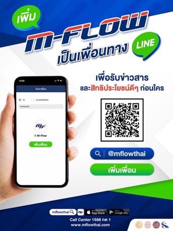 สมัครใช้บริการ M-FLOW ง่าย ๆ เพียง 2 นาที ผ่าน Line OA. เพิ่มเพื่อน @mflowthai หรือ สแกน QR Code แล้วผูกกับบัตรเครดิต
