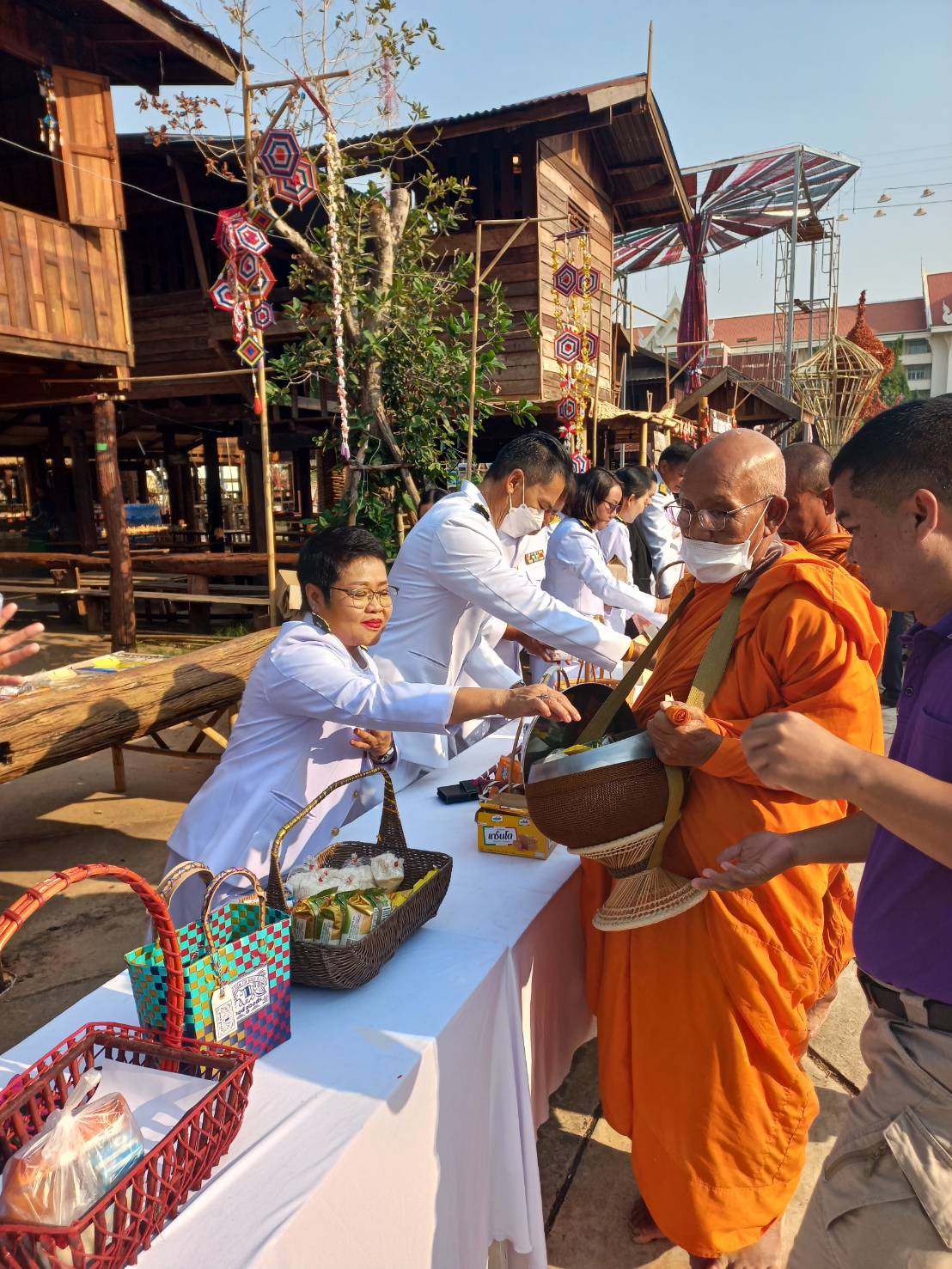 เวลา 08.00 น. ร่วมพิธีทำบุญตักบาตรถวายพระราชกุศล ณ บริเวณเฮือนโบราณ หน้าศาลากลางจังหวัดขอนแก่น