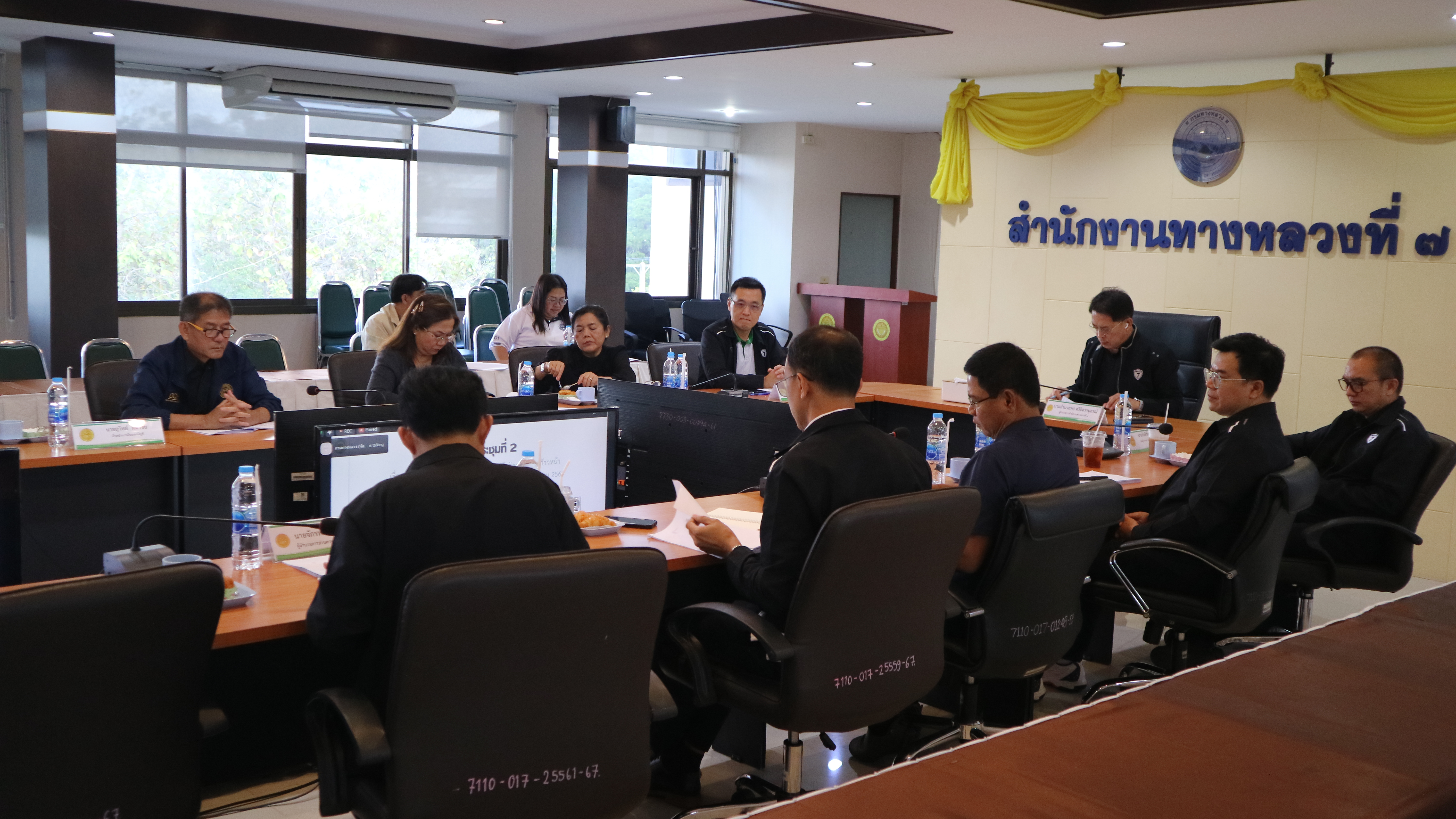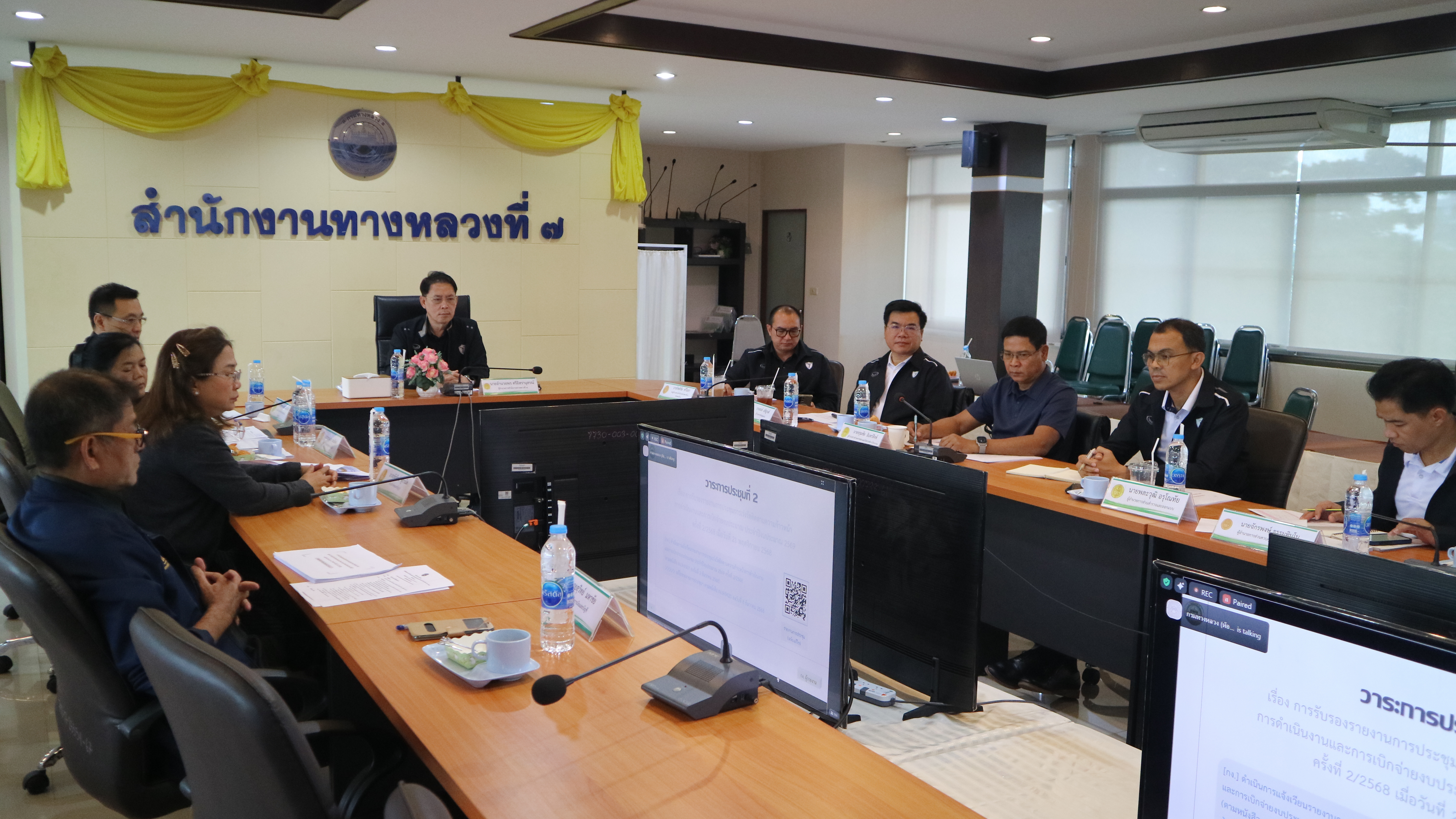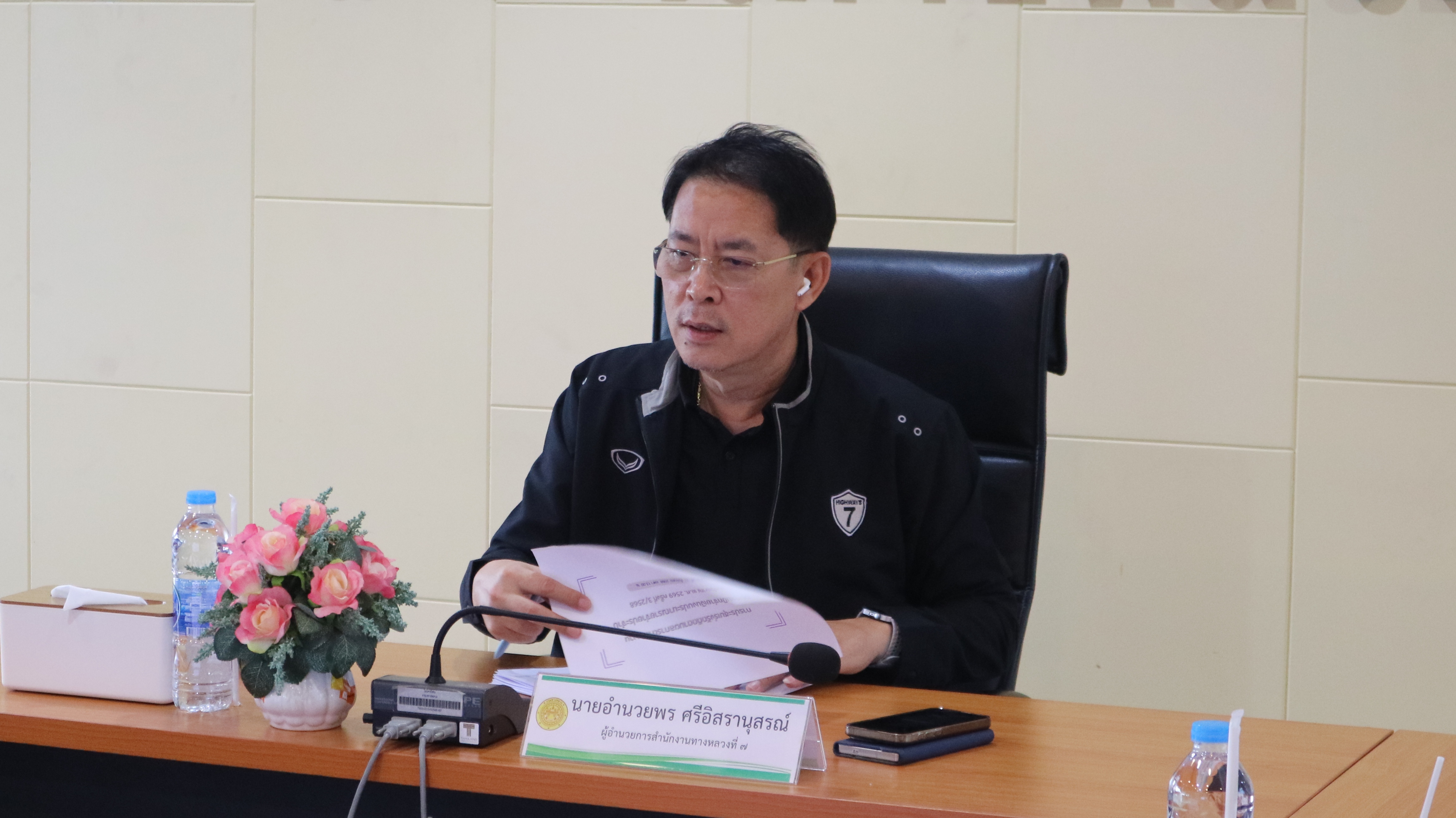 ในการนี้ นายอำนวยพร ศรีอิสรานุสรณ์ ผู้อำนวยการสำนักงานทางหลวงที่ 7 พร้อมด้วยคณะผู้บริหาร ข้าราชการ และเจ้าหน้าที่ เข้าร่วมการประชุม ณ ห้องประชุม ชั้น 3 สำนักงานทางหลวงที่ 7 เพื่อกำกับติดตามการดำเนินงาน การจัดซื้อจัดจ้าง และการเบิกจ่ายงบประมาณให้เป็นไปตามแผนและเกิดประสิทธิภาพสูงสุด