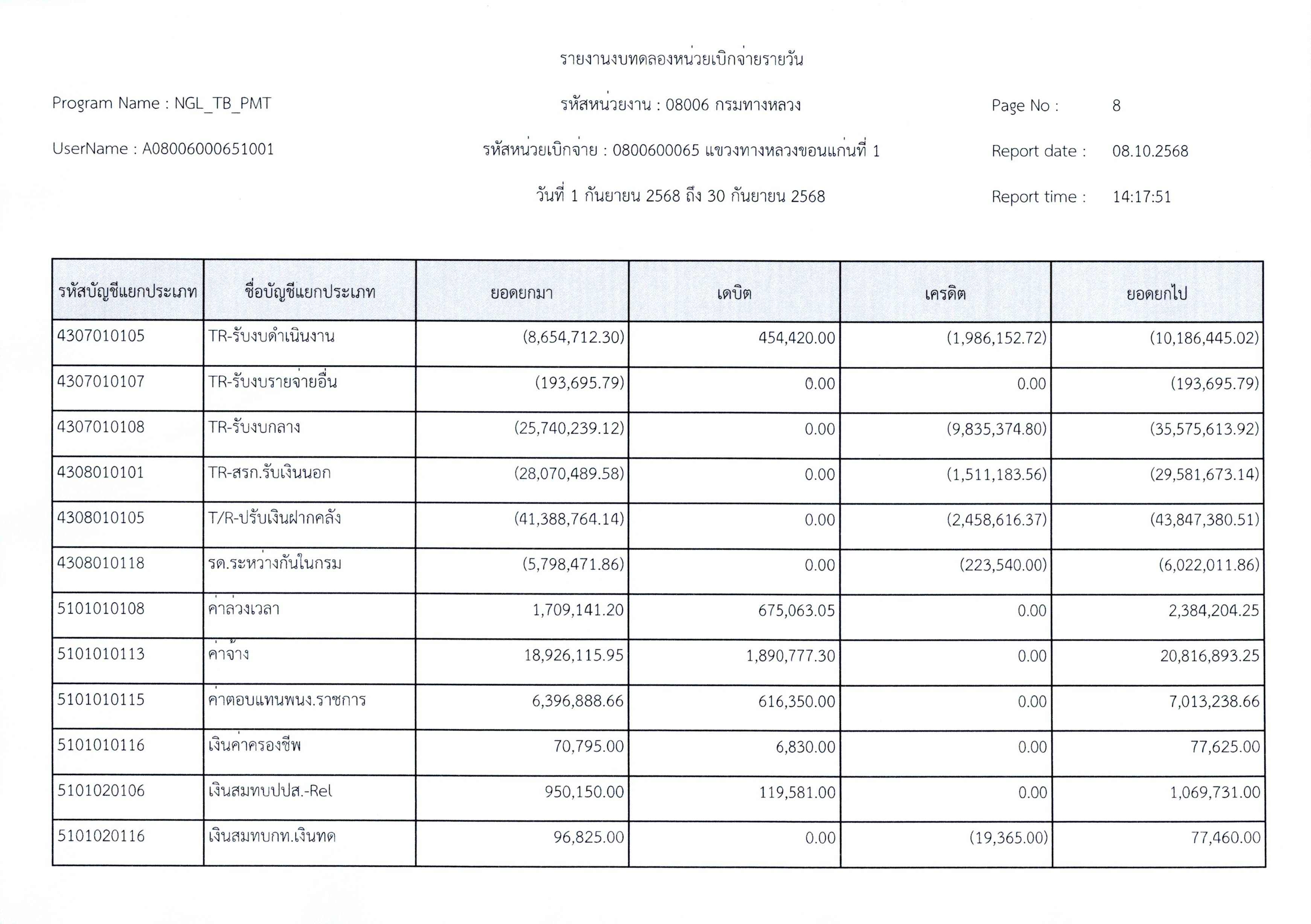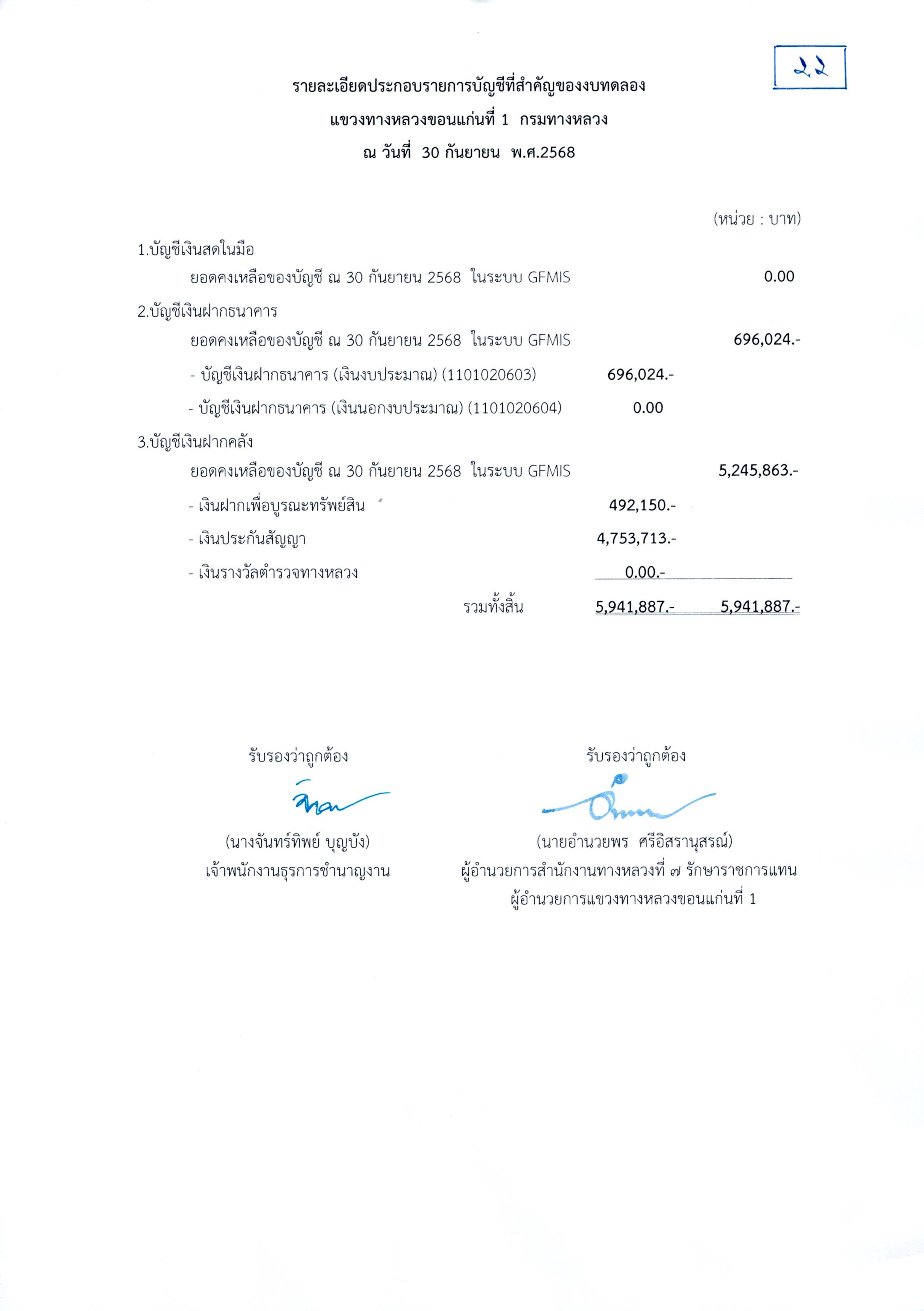 งบทดลองประจำเดือนกันยายน 2568