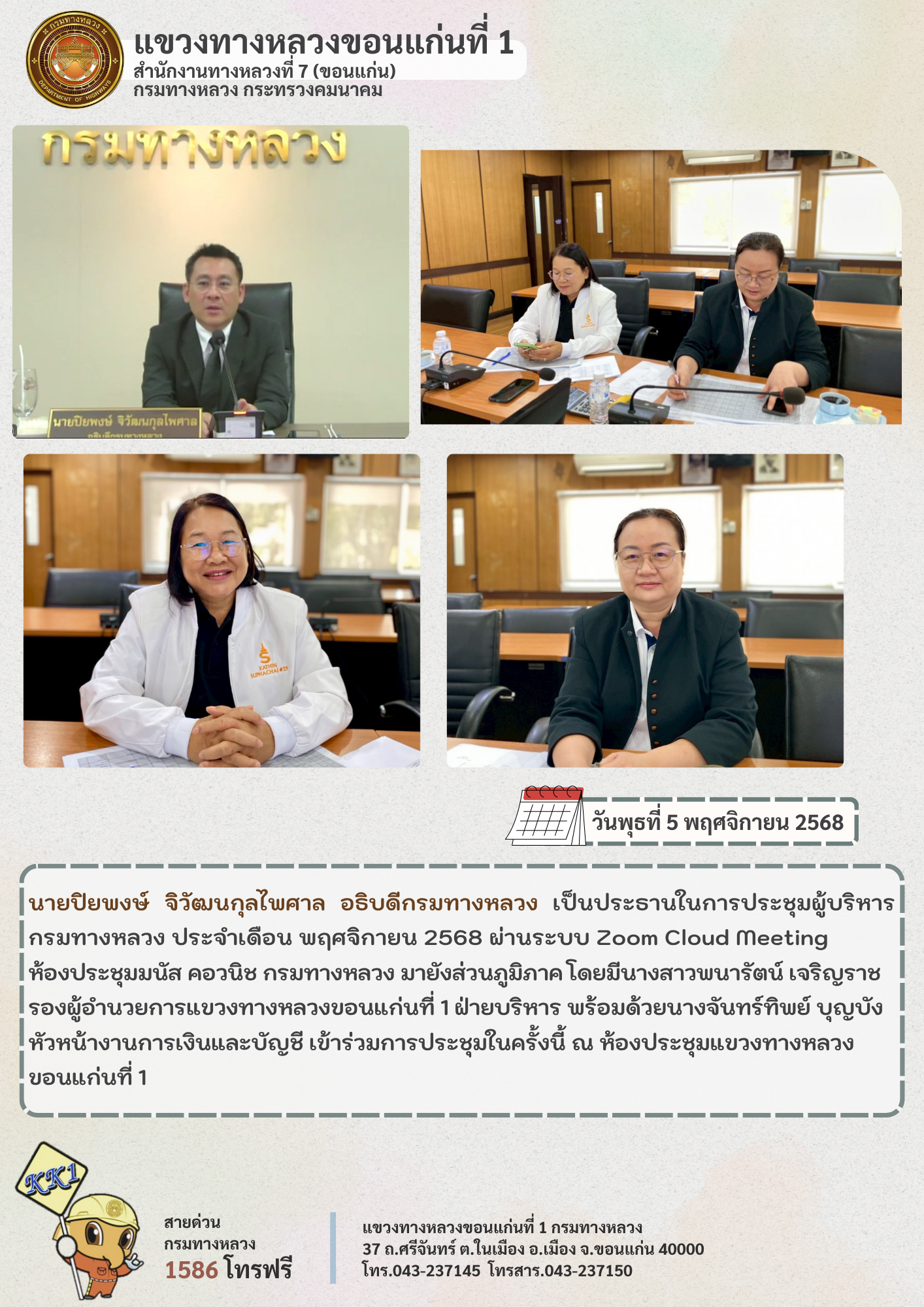 ประชุมผู้บริหารกรมทางหลวง ประจำเดือนพฤศจิกายน 2568