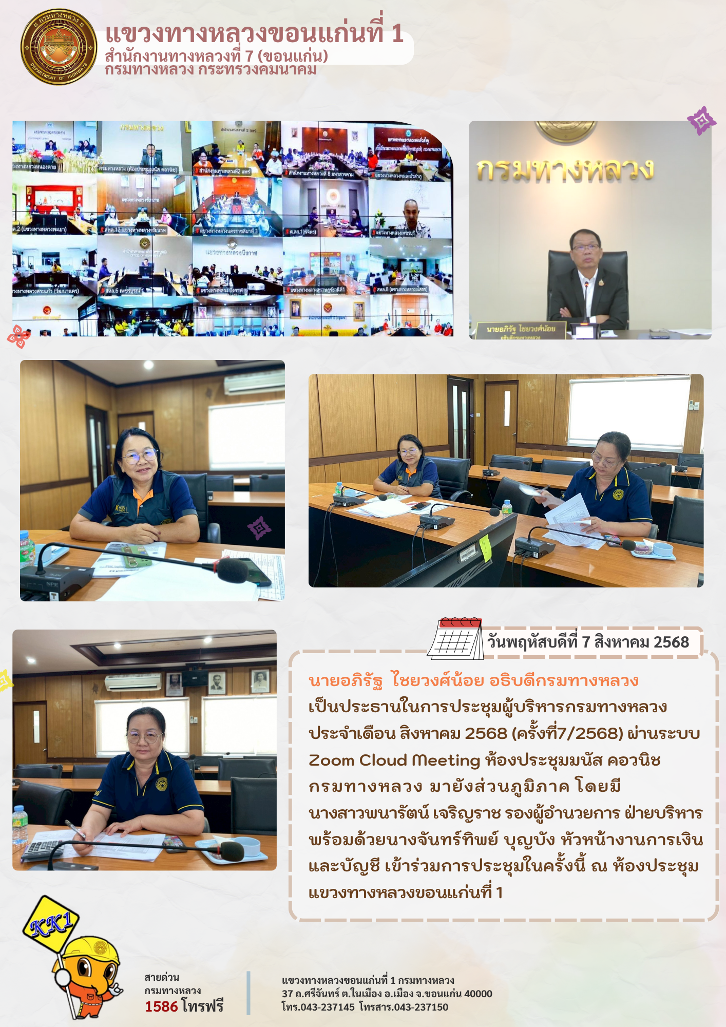 การประชุมผู้บริหารกรมทางหลวง ประจำเดือนสิงหาคม 2568 ครั้งที่7/2568