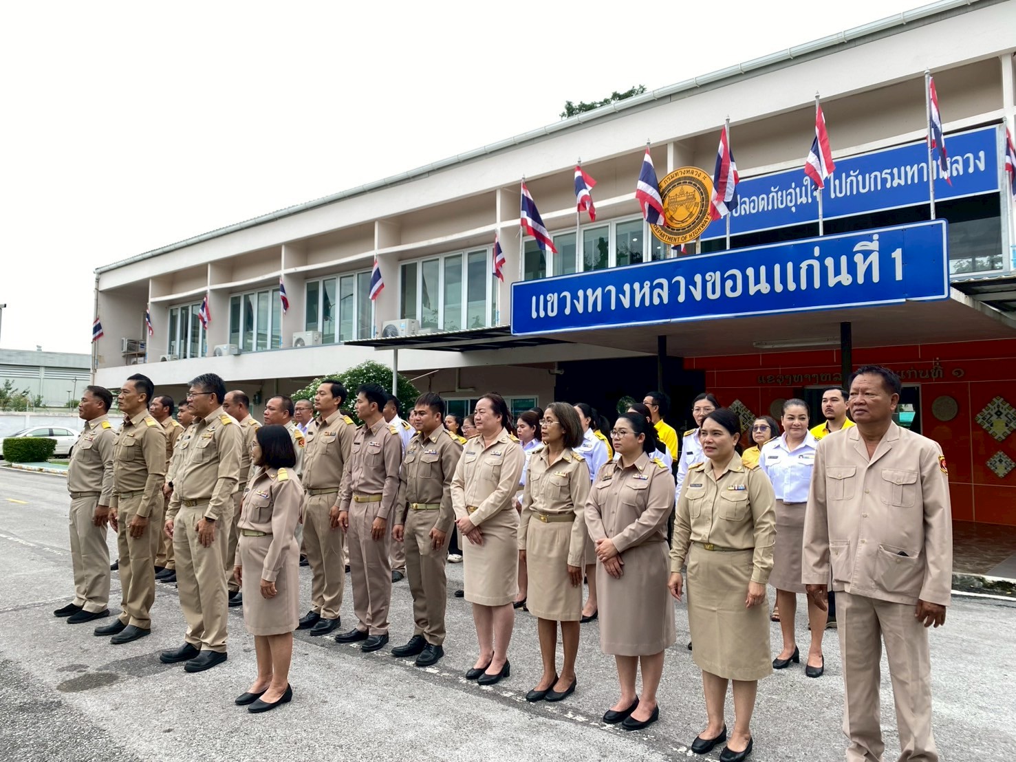แขวงทางหลวงขอนแก่นที่ 1 ได้จัดกิจกรรม “วันพระราชทานธงชาติไทย (Thai National Flag Day)” ประจำปี 2568 โดยมีนายศุภลักษณ์ ศิริสุทธิ์ รองผู้อำนวยการฝ่ายปฏิบัติการ, นายอนุวัฒน์ เรืองเดชาวิวัฒน์ รองผู้อำนวยการฝ่ายวิศวกรรม, นางสาวพนารัตน์ เจริญราช รองผู้อำนวยการฝ่ายบริหาร พร้อมด้วยเหล่าข้าราชการ พนักงานราชการ และเจ้าหน้าที่ในสังกัด เข้าร่วมกิจกรรมฯ และร้องเพลงชาติไทย ณ สำนักงานแขวงทางหลวงขอนแก่นที่ 1