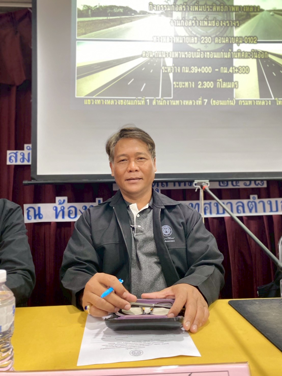แขวงทางหลวงขอนแก่นที่ 1 ได้จัดการประชุมโครงการการพัฒนาทางหลวงเพื่อสนับสนุนระบบคมนาคมและโลจิสติกส์ กิจกรรมก่อสร้างเพิ่มประสิทธิภาพทางหลวง งานก่อสร้างเพิ่มช่องจราจร ทางหลวงหมายเลข 230 ตอนควบคุม 0102 ตอน ถนนวงแหวนรอบเมืองขอนแก่นด้านทิศตะวันออก ระหว่าง กม.39+000 - กม.41+300 โดยมีนายศุภลักษณ์ ศิริสุทธิ์ รองผู้อำนวยการแขวงทางหลวงขอนแก่นที่ 1 ฝ่ายปฏิบัติการ, นางสาวพนารัตน์ เจริญราช รองผู้อำนวยการแขวงทางหลวงขอนแก่นที่ 1 ฝ่ายบริหาร, นายศราวุฒิ คีรีวงษ์วิศวกรโยธาปฏิบัติการ ส่วนสำรวจและออกแบบ สำนักงานทางหลวงที่ 7 (ขอนแก่น), นางธนาภรณ์ พรมแสน วิศวกรโยธาปฏิบัติการส่วนสำรวจและออกแบบ สำนักงานทางหลวงที่ 7 (ขอนแก่น) และนายนันทพงศ์ กิตติตรัยพัฒน์ หัวหน้าหมวดทางหลวงพระลับ ร่วมให้ข้อมูลและตอบข้อซักถามให้แก่ประชาชนที่เข้าร่วมโครงการดังกล่าว โดยมี นายพัฒนา นุศรีอัน นายกเทศมนตรีตำบลพระลับ เป็นประธานเปิดการประชุมโครงการฯ ณ ห้องประชุมเทศบาลตำบลพระลับ