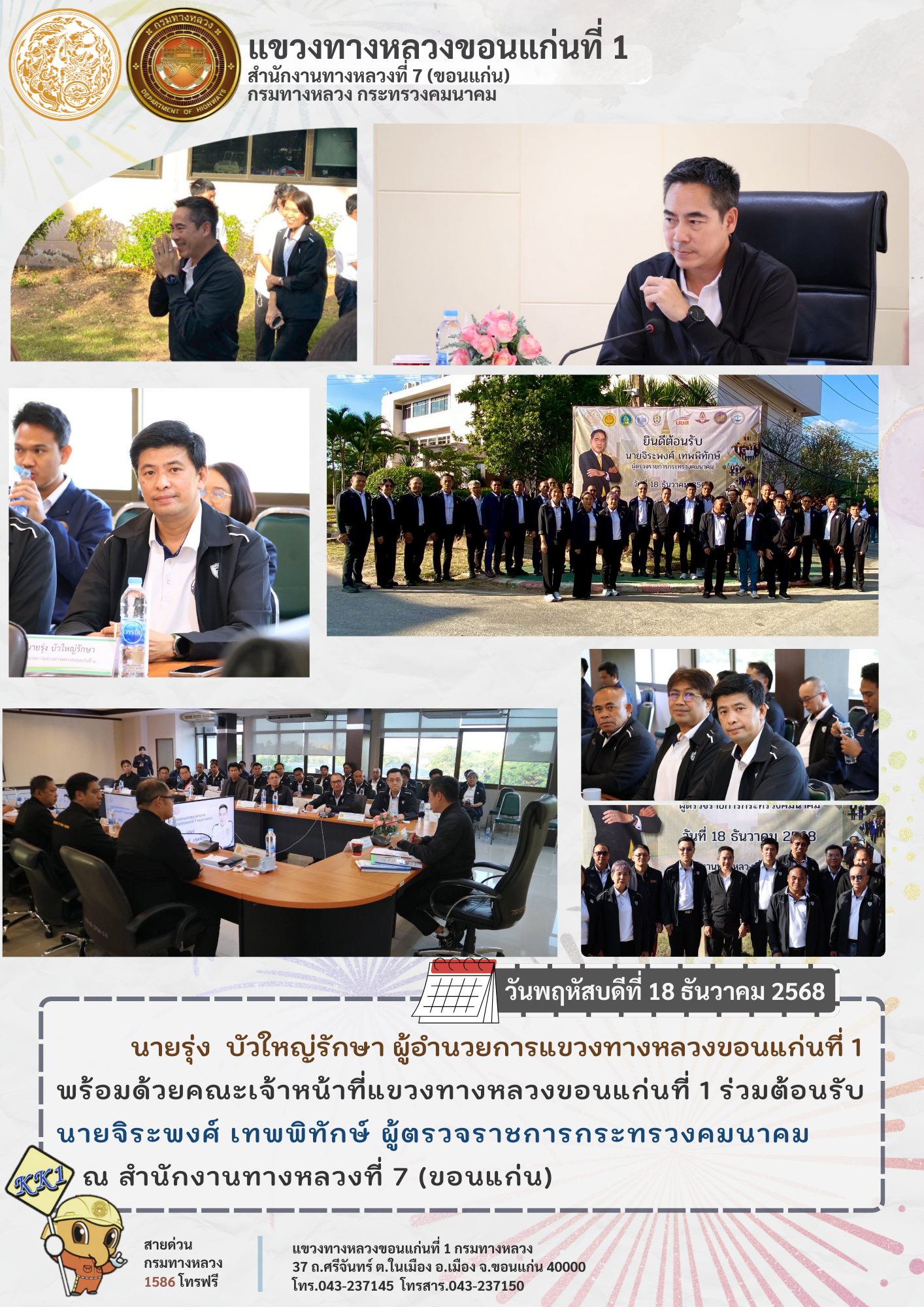 พร้อมด้วยคณะเจ้าหน้าที่แขวงทางหลวงขอนแก่นที่ 1