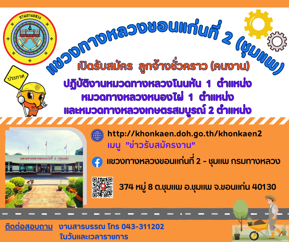 ปฏิบัติงานหมวดทางหลวงโนนหัน 1 ตำแหน่ง