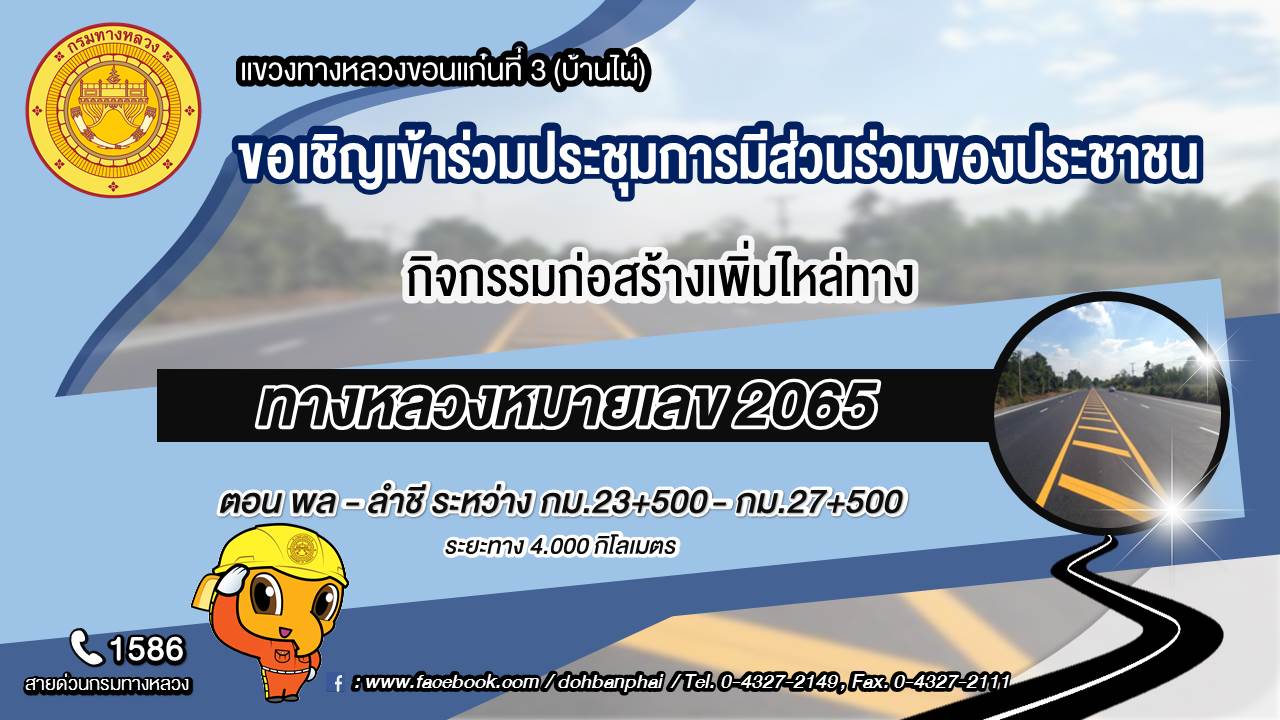1.กิจกรรมก่อสร้างเพิ่มไหล่ทาง ทางหลวงหมายเลข 2065 ตอน พล-ลำชี กม.23+500-27+500