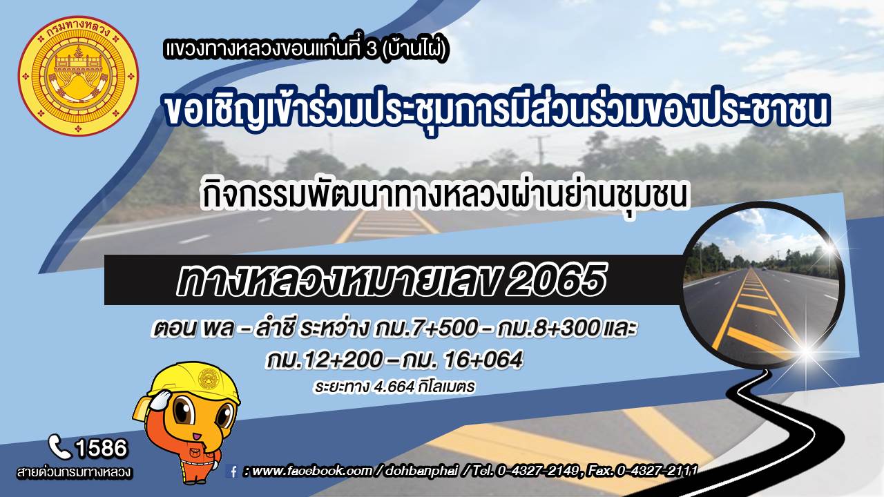 3.กิจกรรมพัฒนาทางหลวงผ่านย่านชุมชน ทางหลวงหมายเลข 2065 ตอน พล-ลำชี กม.7+500-8+300 และ กม.12+200-16+064
