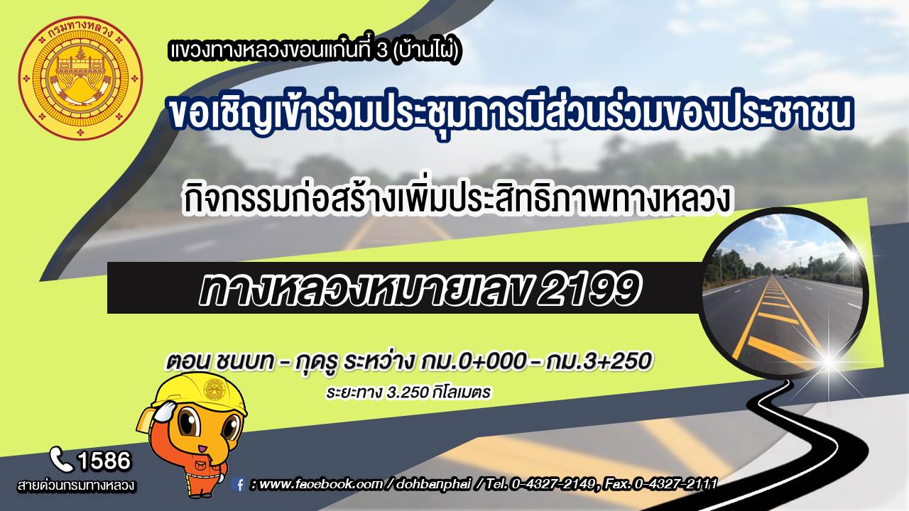 6.กิจกรรมก่อสร้างเพิ่มประสิทธิภาพทางหลวง ทางหลวงหมายเลข 2199 ตอน ชนบท-กุดรู กม.0+000-3+250