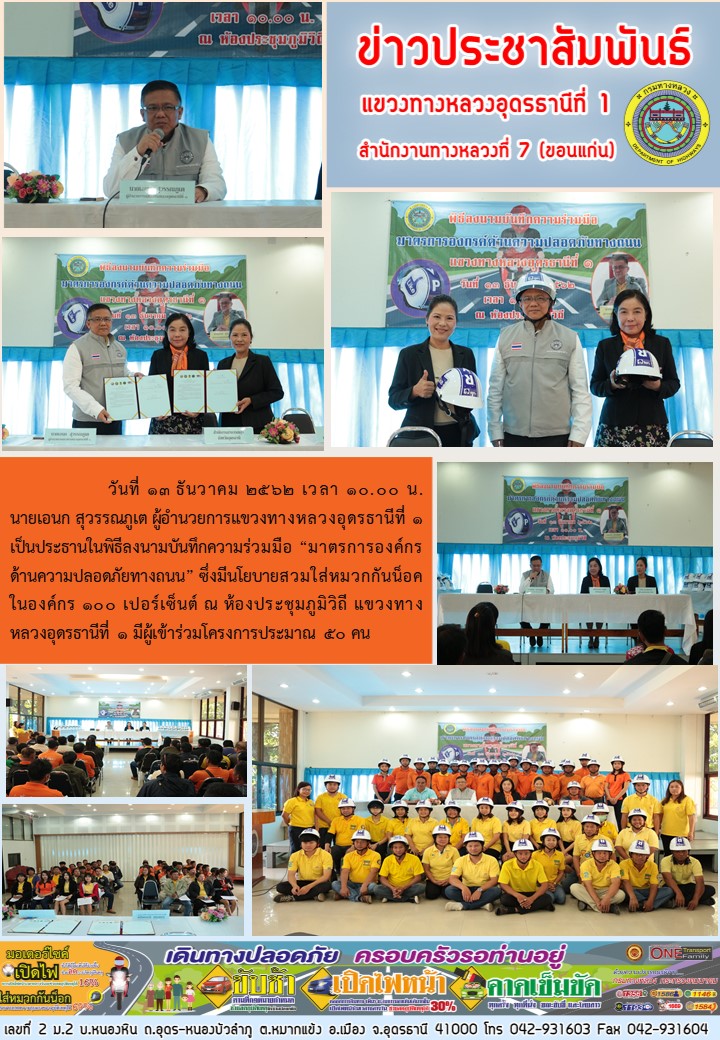 831 13/12/2562 พิธีลงนามบันทึกความร่วมมือ “มาตรการองค์กรด้านความปลอดภัยทางถนน”