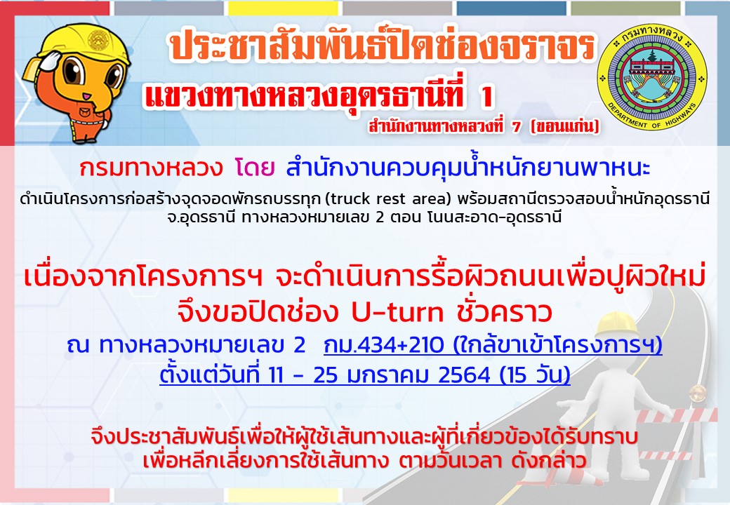 ข้อมูลข่าว : โครงการก่อสร้างจุดจอดพักรถบรรทุก (truck rest area) พร้อมสถานีตรวจสอบน้ำหนักอุดรธานี จ.อุดรธานี ทางหลวงหมายเลข 2 ตอน โนนสะอาด-อุดรธานี
