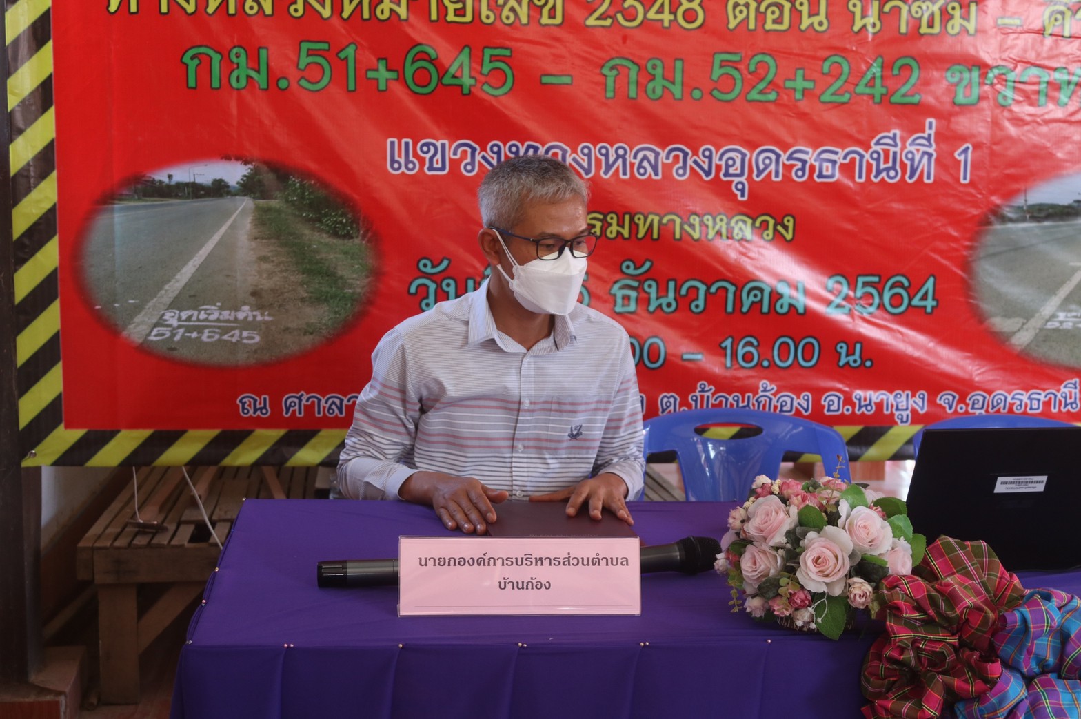 วันที่ ๑๕ ธันวาคม ๒๕๖๔ เวลา ๑๓.๐๐ น. แขวงทางหลวงอุดรธานีที่ ๑ ดำเนินการจัดการประชุมการมีส่วนร่วมของประชาชน โครงการก่อสร้าง ปรับปรุง สะพานและอาคารระบายน้ำ ทางหลวงหมายเลข ๒๓๔๘ ตอน น้ำซึม-คีรีวงกต กม.๕๑+๖๔๕ - กม.๕๒+๒๔๒ ด้านขวาทาง ณ ศาลากลางบ้านโนนเมือง บ.โนนเมือง ม.๓ ต.บ้านก้อง อ.นายูง จ.อุดรธานี โดยมีนายปรเมศว์ เสียวสุข รองปลัดองค์การบริหารส่วนตำบล รักาาราชการแทน ปลัดองค์การบริหารส่วนตำบล ปฎิบัติหน้าที่ นายกองค์การบริหารส่วนตำบลบ้านก้อง เป็นประธานในพิธี วิทยากรบรรยายโครงการโดย นายสามารถ ศรีมุงคุณ รอ.ขท.(ว) และนายวัชรพงษ์ ปลัดศรีช่วย หัวหน้าหมวดทางหลวงน้ำโสม ผู้เข้าร่วมประชุมเป็นผู้เกี่ยวข้องและมีส่วนได้เสียในพื้นที่ก่อสร้าง ประมาณ ๑๐๐ คน