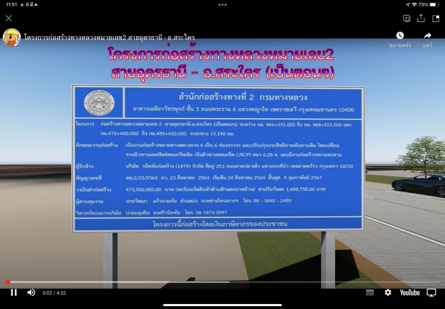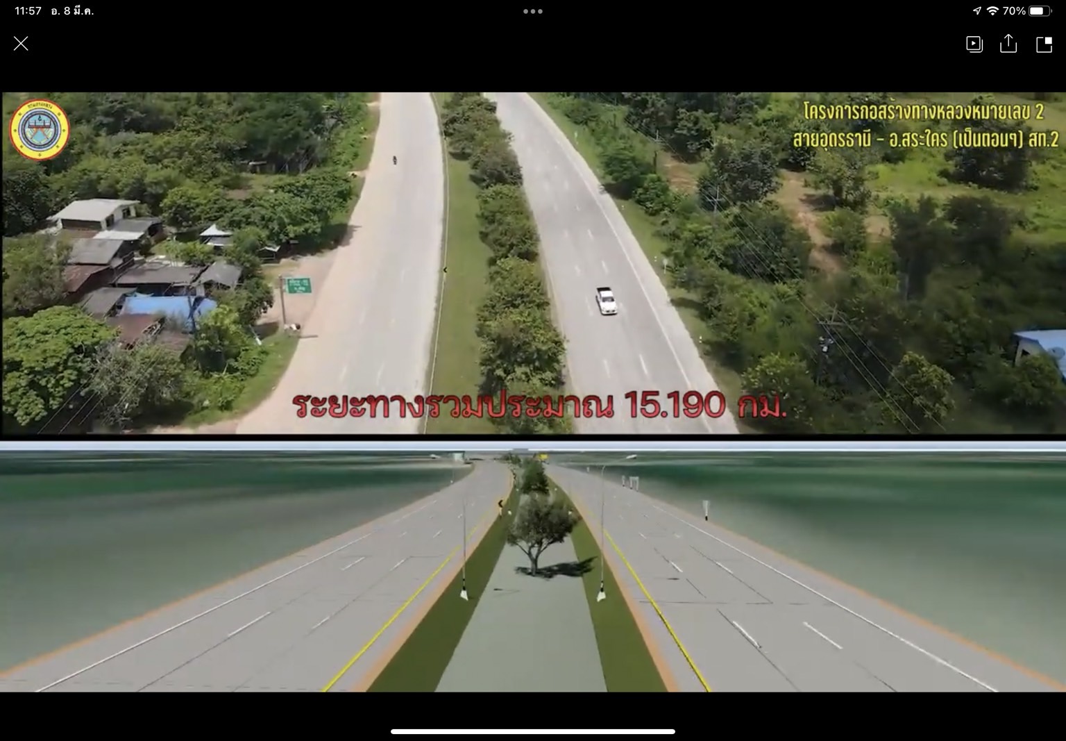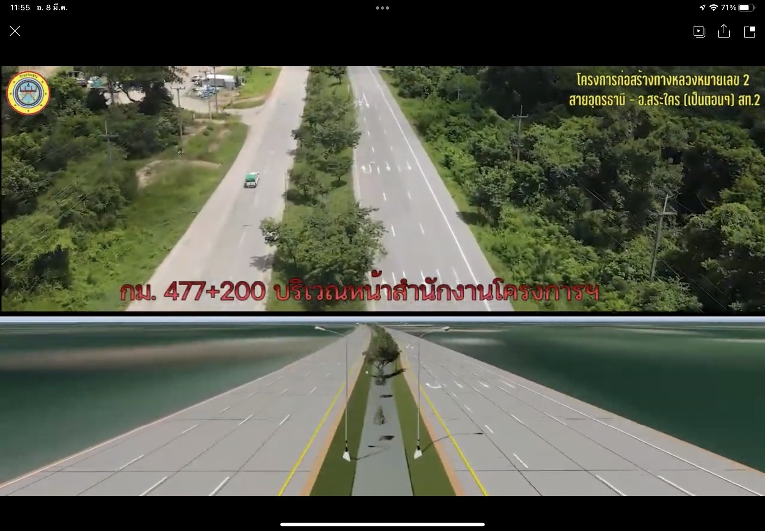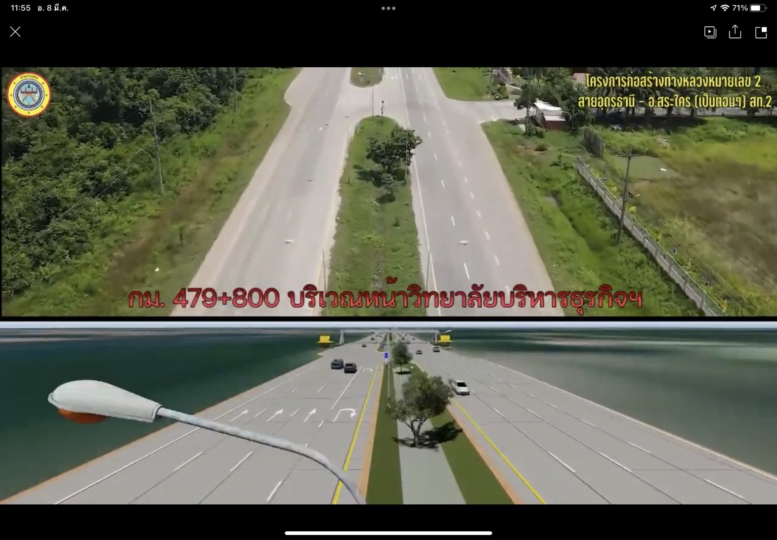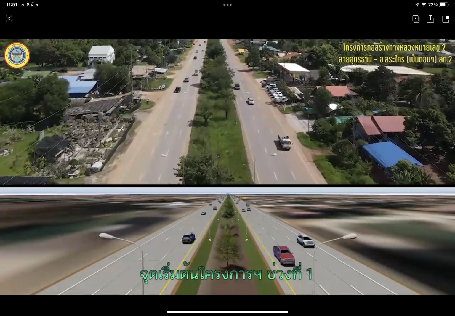 #แขวงทางหลวงอุดรธานีที่1 ประชาสัมพันธ์#โครงการก่อสร้างสายอุดร-สระใครภาพเสมือนจริง 3D กับภาพจริงก่อนดำเนินงาน