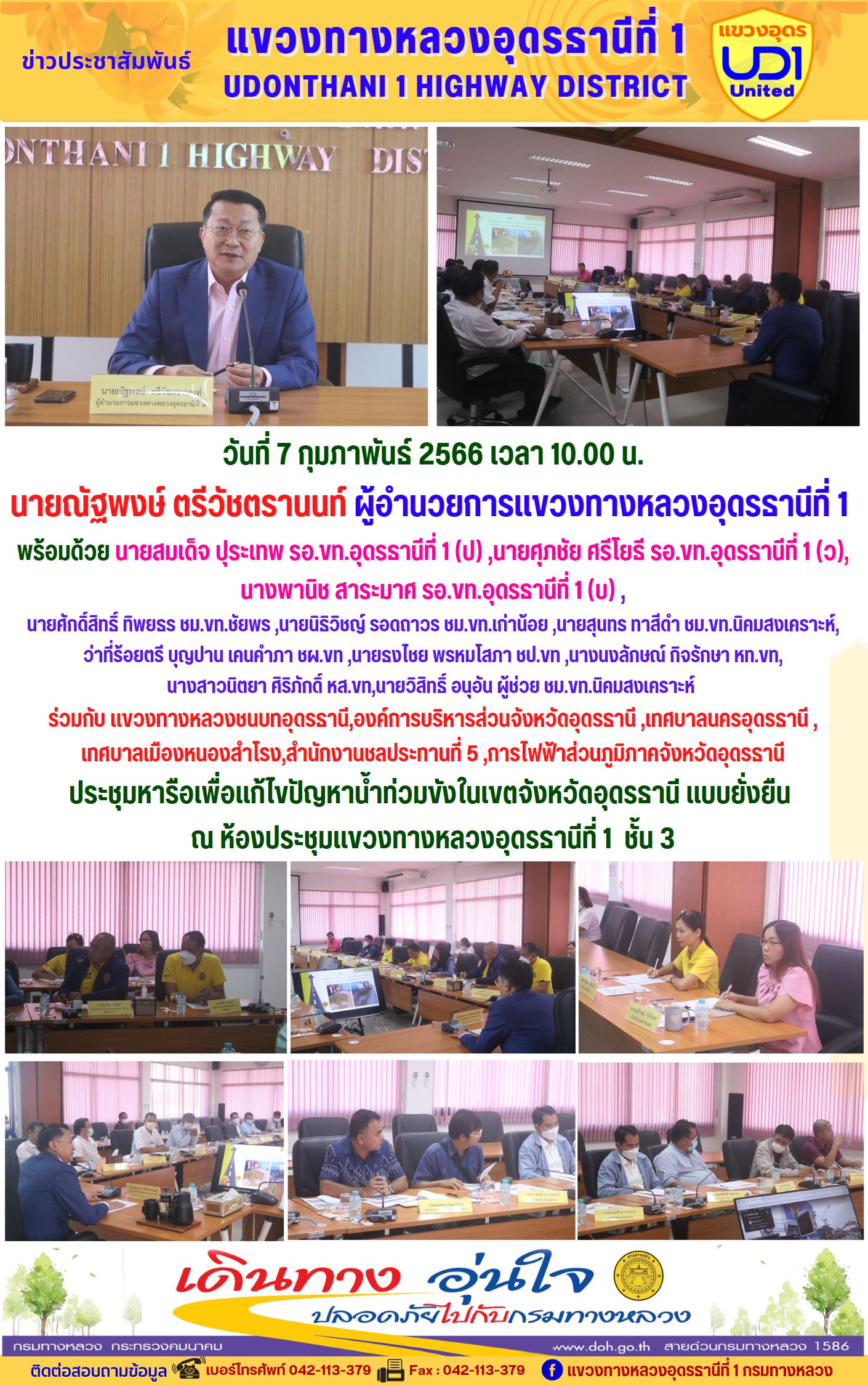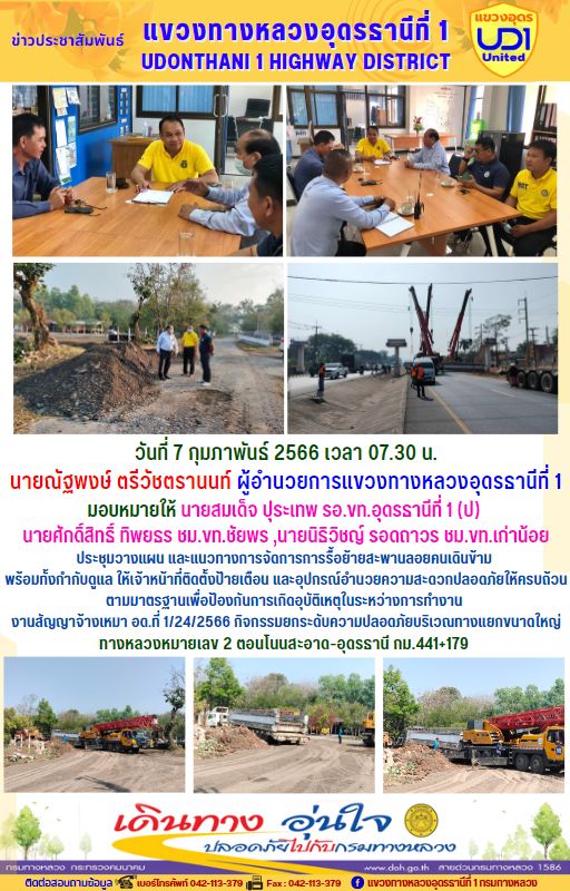 #ข่าวประชาสัมพันธ์ #กระทรวงคมนาคม #กรมทางหลวง #สำนักทางหลวงที่7 (ขอนแก่น) #แขวงทางหลวงอุดรธานีที่1 #อุดรธานี #นายณัฐพงษ์ตรีวัชตรานนท์ วันที่ 3 กุมภาพันธ์ 2566