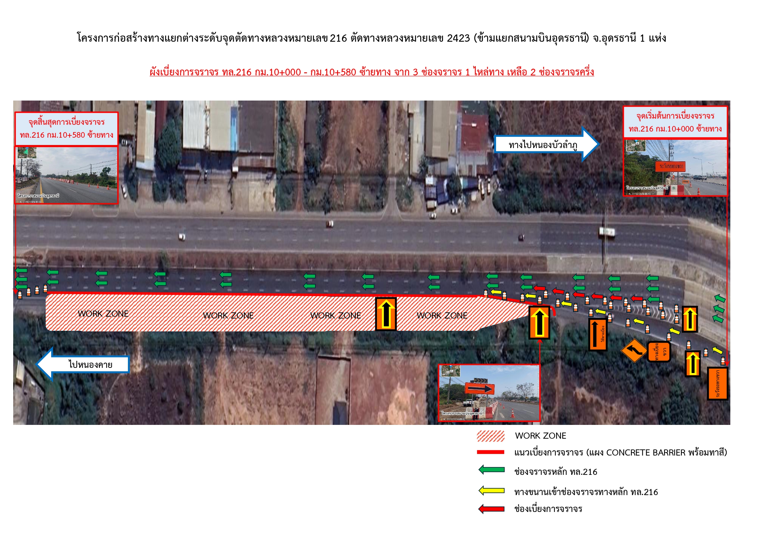 ประกาศจากแขวงทางหลวงอุดรธานีที่ 1 ประกาศจากแขวงทางหลวงอุดรธานีที่ 1 โครงการก่อสร้างทางแยกต่างระดับจุดตัดทางหลวงหมายเลข 216 ตัดทางหลวงหมายเลข 2423 (แยกเข้าสนามบินอุดรธานี) จังหวัดอุดรธานี 1 แห่ง